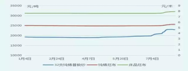 今年國內主要棉紗線、坯布價格走勢