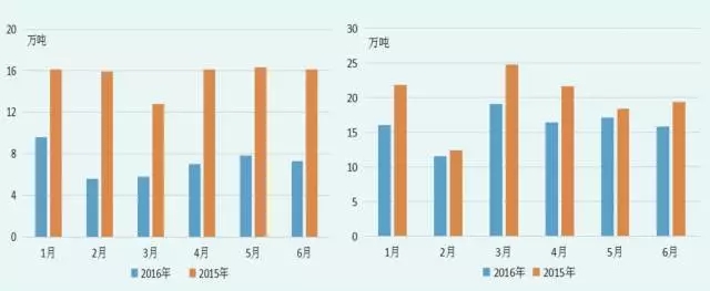 2016年上半年我國棉花進口情況(左)