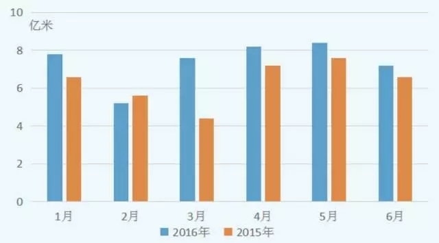 海關數據統計,今年上半年我國累計出口棉織物44.3億米,同比上升16.7%。從單月出口情況看,除2月份外,今年棉織物單月出口量較2015年同期均有增加,在全球貿易需求普遍低迷的情況下,我國棉織物的國際競爭優勢凸顯。