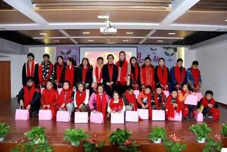 會上,長安街道黨工委委員王峰上臺致辭;藍絲帶志愿者協會會長“開心”回顧上年度工作并作出總結;長安街道黨工委委員馬士惠與江蘇新瑞貝科技股份有限公司代表為結對的孩子發放新年禮物。